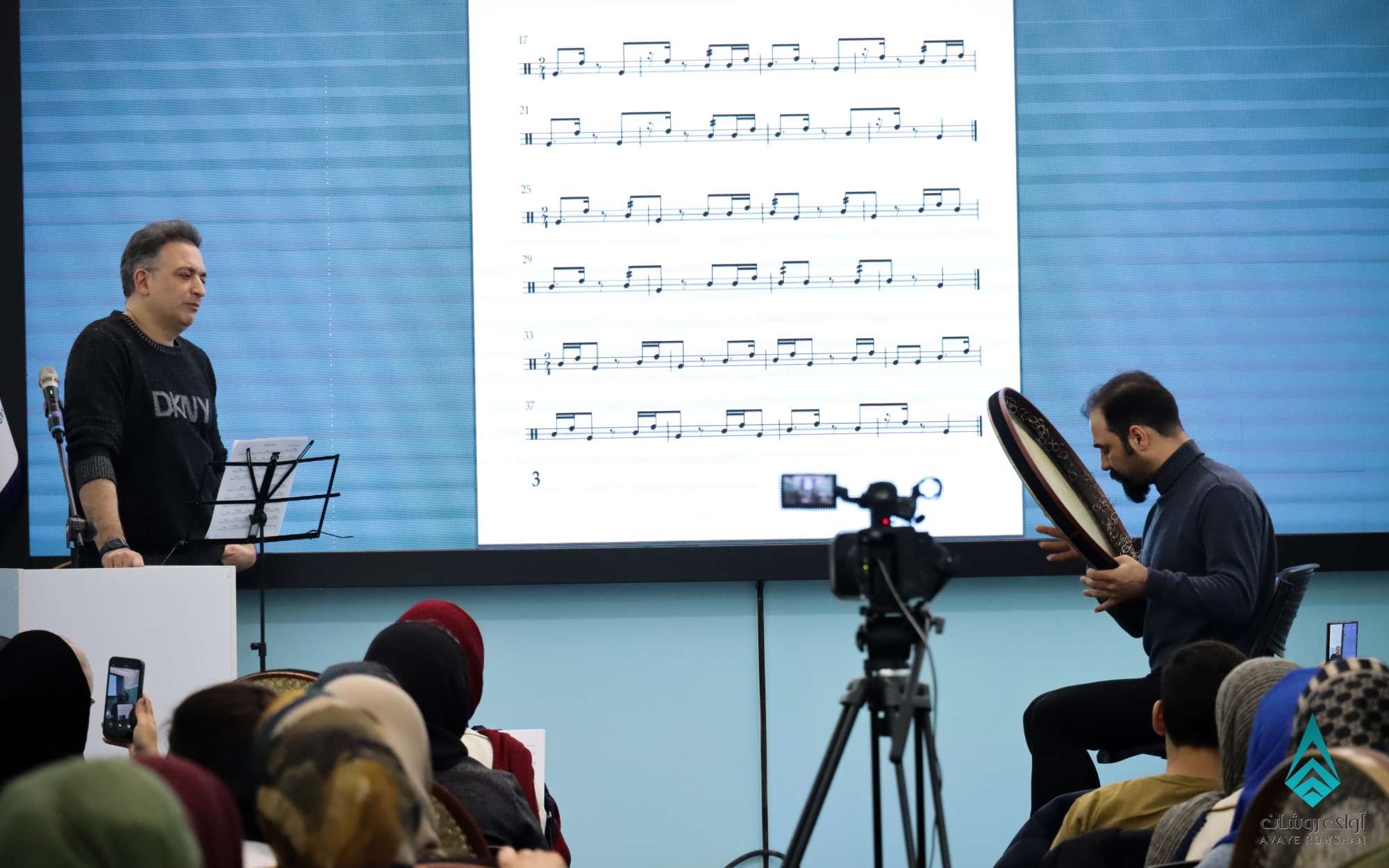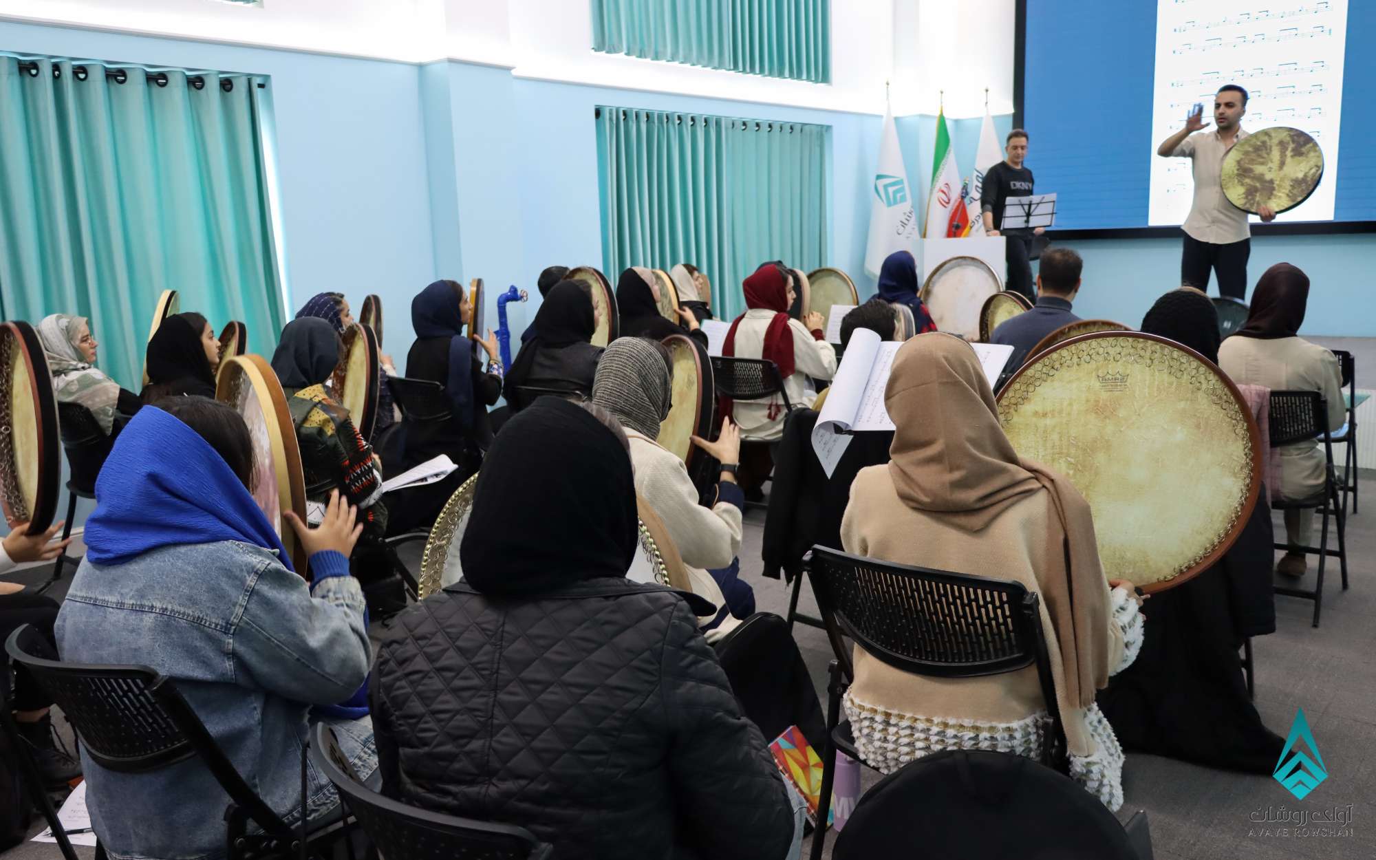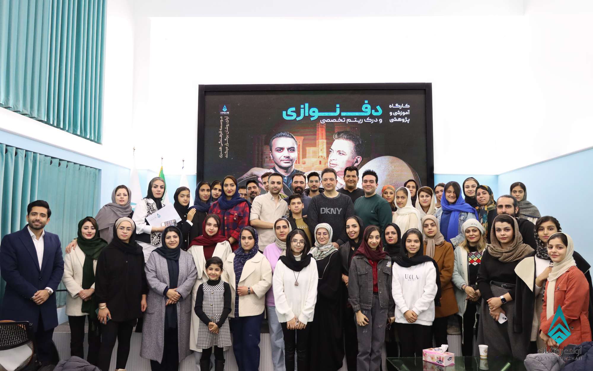 کارگاه آموزشی و پژوهشی دف نوازی و درک ریتم تخصصی با حضور استاد حسین رضایی نیا و استاد سینا شهریاری از اساتید برجسته کشوری و با ارائه گواهی معتبر حضور در دوره ، مورخ جمعه 403/10/28 با حضور بیش از 40 نفر برگزار گردید . در ادامه گزارش ویدیوئی و تصویری این کارگاه را شاهد هستید .