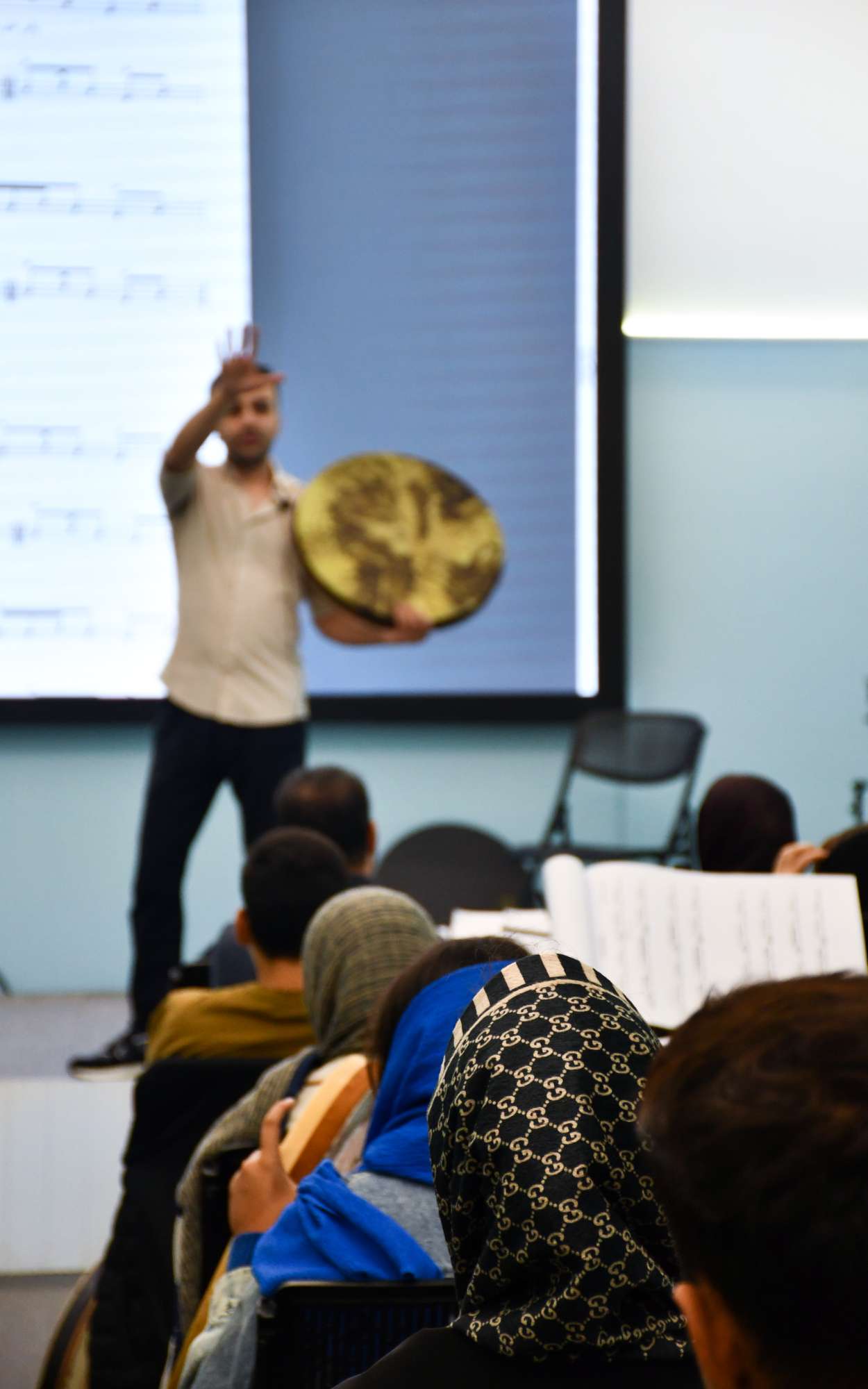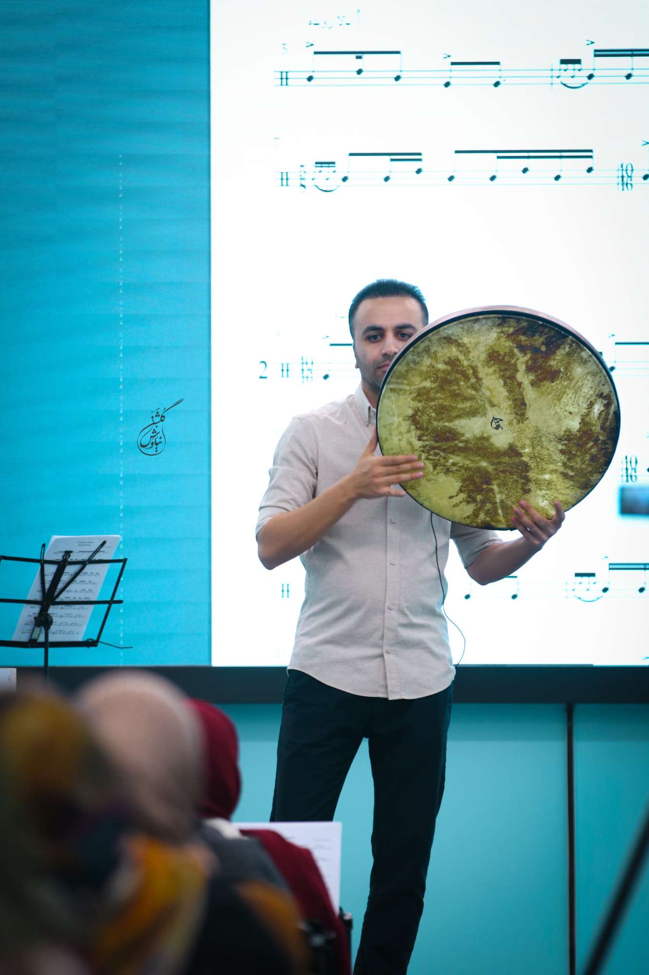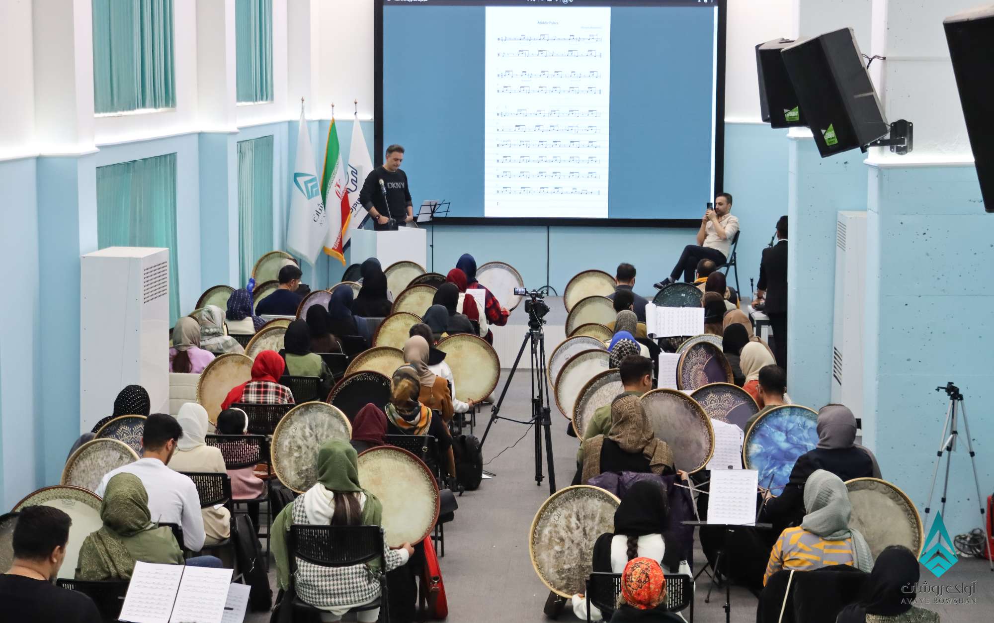 کارگاه آموزشی و پژوهشی دف نوازی و درک ریتم تخصصی با حضور استاد حسین رضایی نیا و استاد سینا شهریاری از اساتید برجسته کشوری و با ارائه گواهی معتبر حضور در دوره ، مورخ جمعه 403/10/28 با حضور بیش از 40 نفر برگزار گردید . در ادامه گزارش ویدیوئی و تصویری این کارگاه را شاهد هستید .